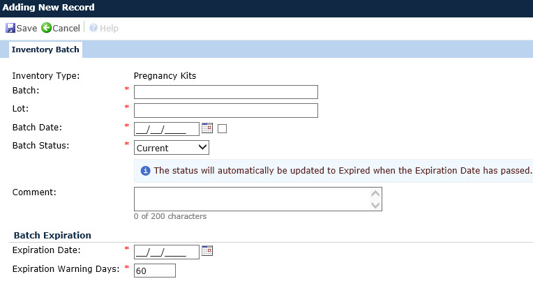 When the record is saved, the system will return to the Inventory Batches page.