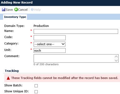Clicking save will return you to Inventory Type List or Inventory Summary.
