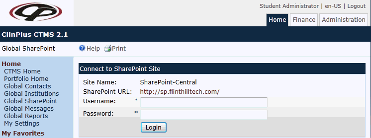 Upon entering this page, the system will attempt to authenticate against the SharePoint Site entered on the SharePoint Site configuration group.