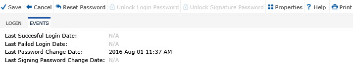 The Events tab provides dates that are related to the user's login, such as the last successful login.