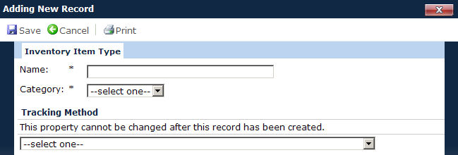 This field displays only when editing an existing record. It will be hidden when the Tracking Method field is set to Track by Quantity. |