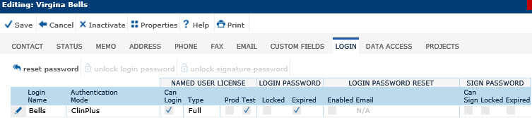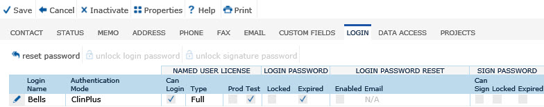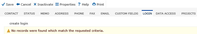 This Login module allows the administrator with the ability to create a login for a contact or edit their existing login account. A contact can only have one login account. Adding a login to a contact's record counts toward the license agreement. Administrators can check the names of the users and the license availability on the Administration tab, System License menu item.