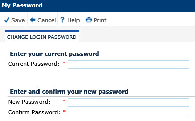 Enter a password to replace the Current Password. The field holds up to 20 characters. Hints will be displayed to the user based on the settings found in the Configuration variables including maximum and minimum length, lowercase, numerics, symbols, and uppercase characters. This field is required. |