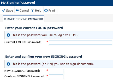 Change Signing Password module provides users with a place to change their own passwords that are used to sign documents based on the system settings.
