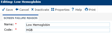 The user can add or edit a single Subject Screen Failure Reason record. After entering the information, click Save and Add to save the record and stay in the module or Save to save the record and return to the Subject Screen Failure Reasons List page.